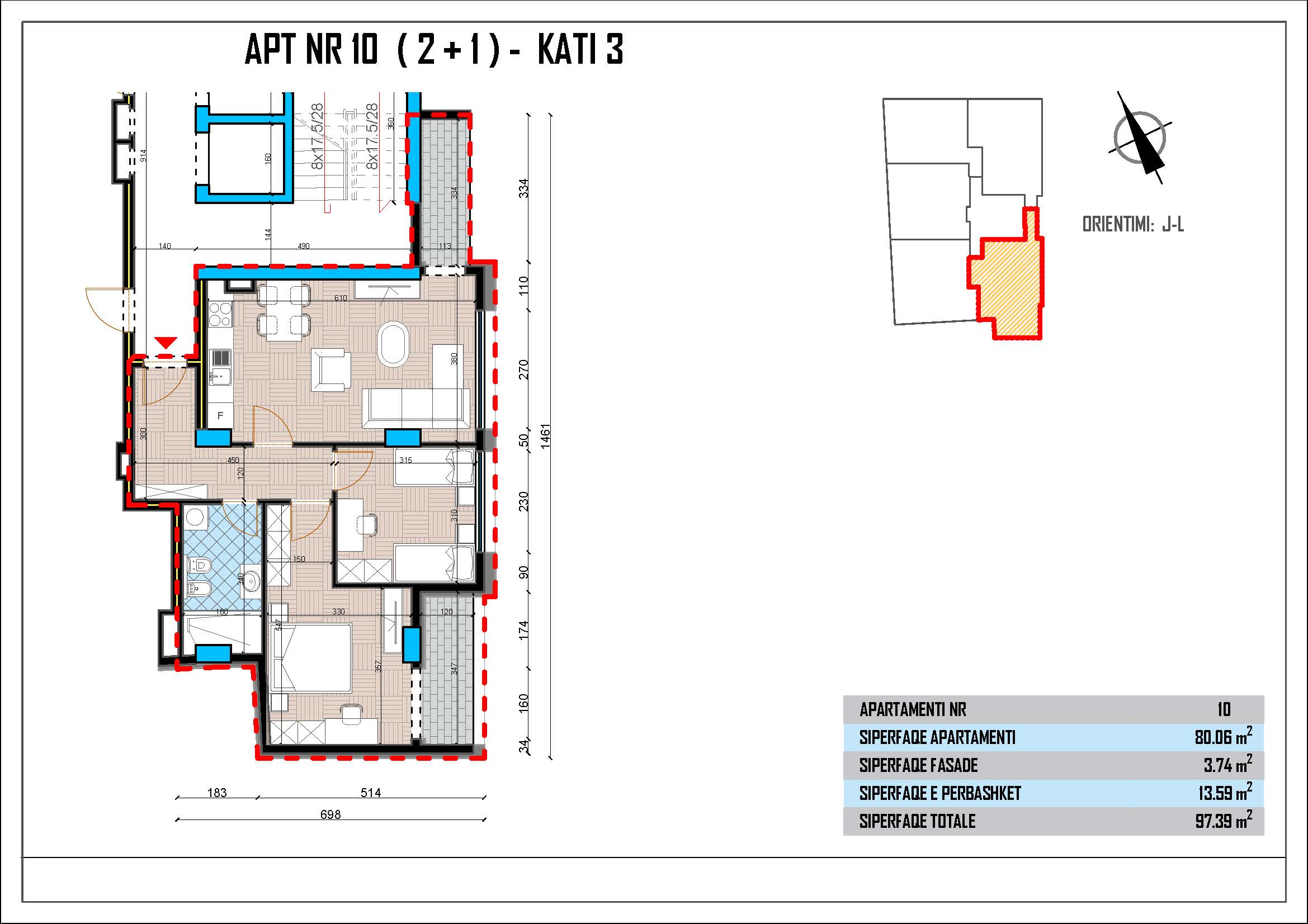 • Sipërfaqe totale: 97.39 m²